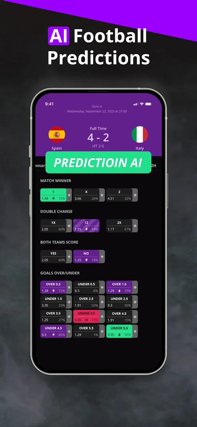 - Expert Prediction Engine & Statistical Models: Leverage the app’s unique algorithm and curated expert insights to generate predictions for match outcomes and specific event probabilities. It helps filter through complex data to suggest outcomes based on rigorous analysis.