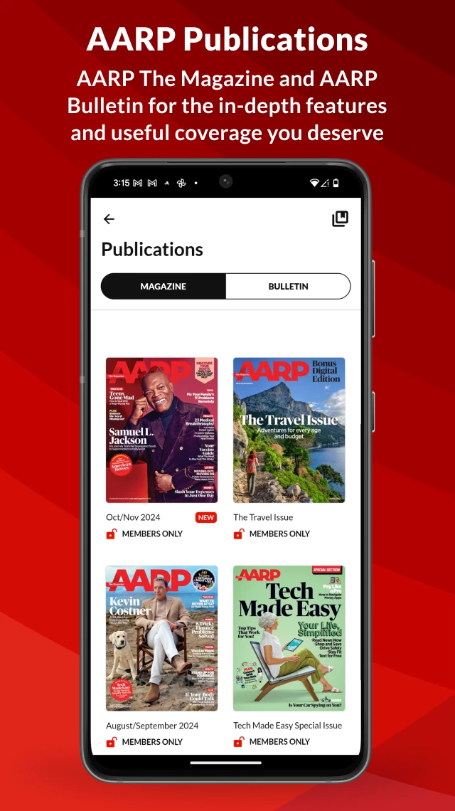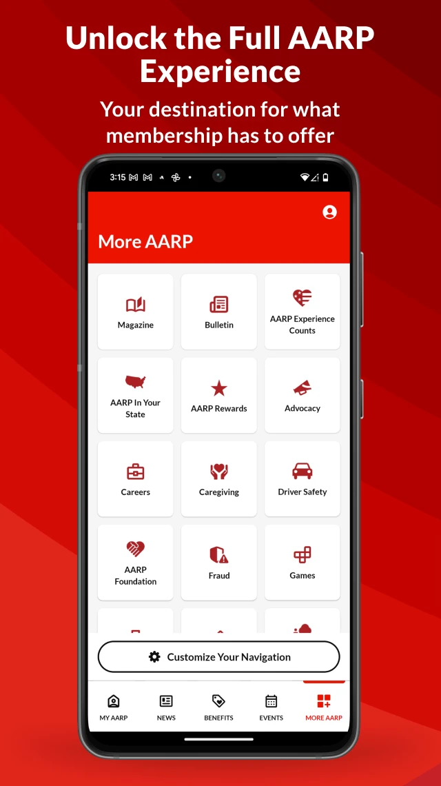 - Links to AARP Resources & Expert Advice: Quick access points to authoritative information on topics like financial planning, health and wellness, legal guidance, and more directly inside the app, eliminating the need for multiple steps to find trusted advice.