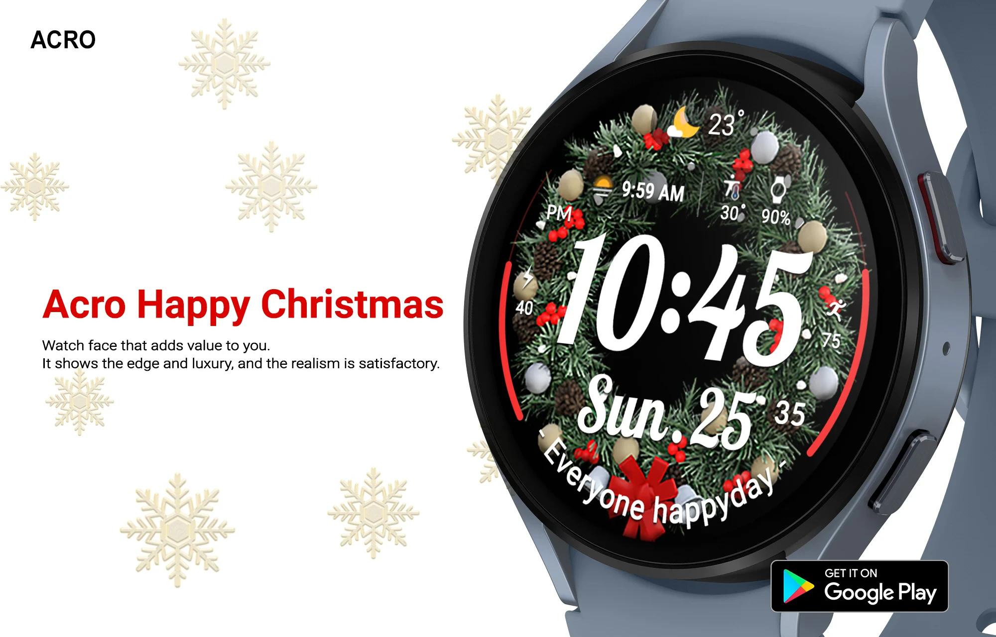The ACRO Happy Christmas Watchface provides more than just seasonal aesthetics—it creates a joyful user experience by allowing you to personalize your watch during the holiday season. This watchface appeals to anyone wanting to celebrate Christmas with style, offering both decorative flair and practical features like date displays while keeping your device looking festive throughout special occasions. It’s perfect for those who want to spread holiday cheer through their tech accessories.