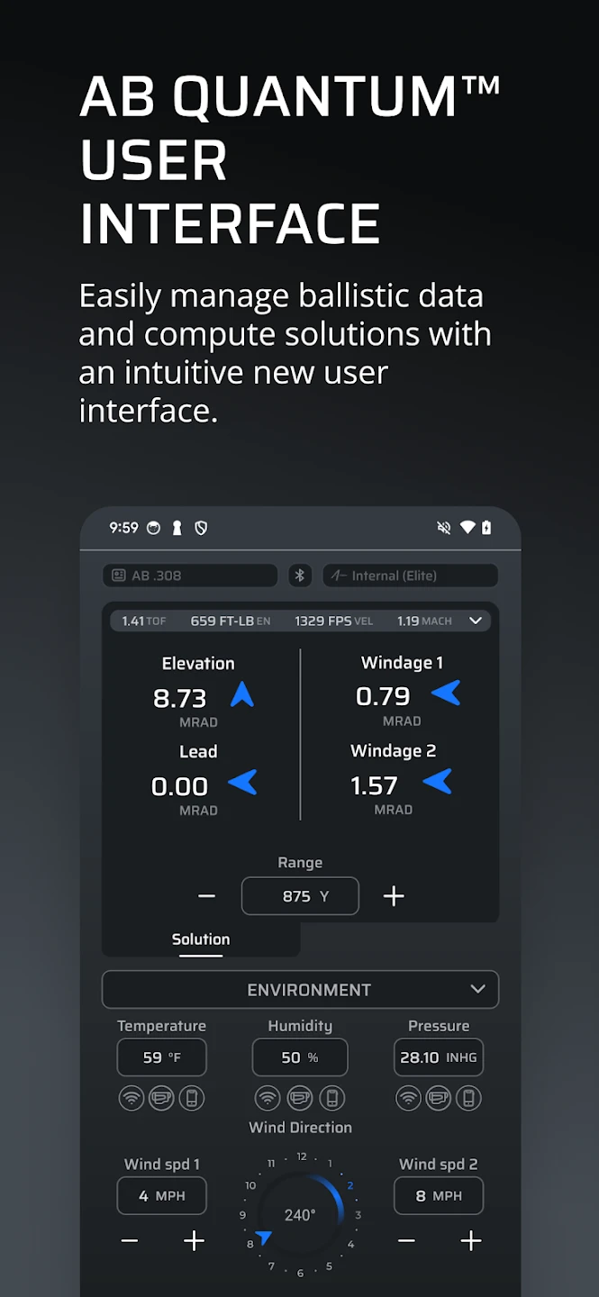 - Interactive Windage & Elevation Dial: Users can dial in precise MOA/Mil adjustments with real-time trajectory visualizations. This intuitive interface integrates GPS and tilt sensor data for stable, compensatory adjustments during field use.