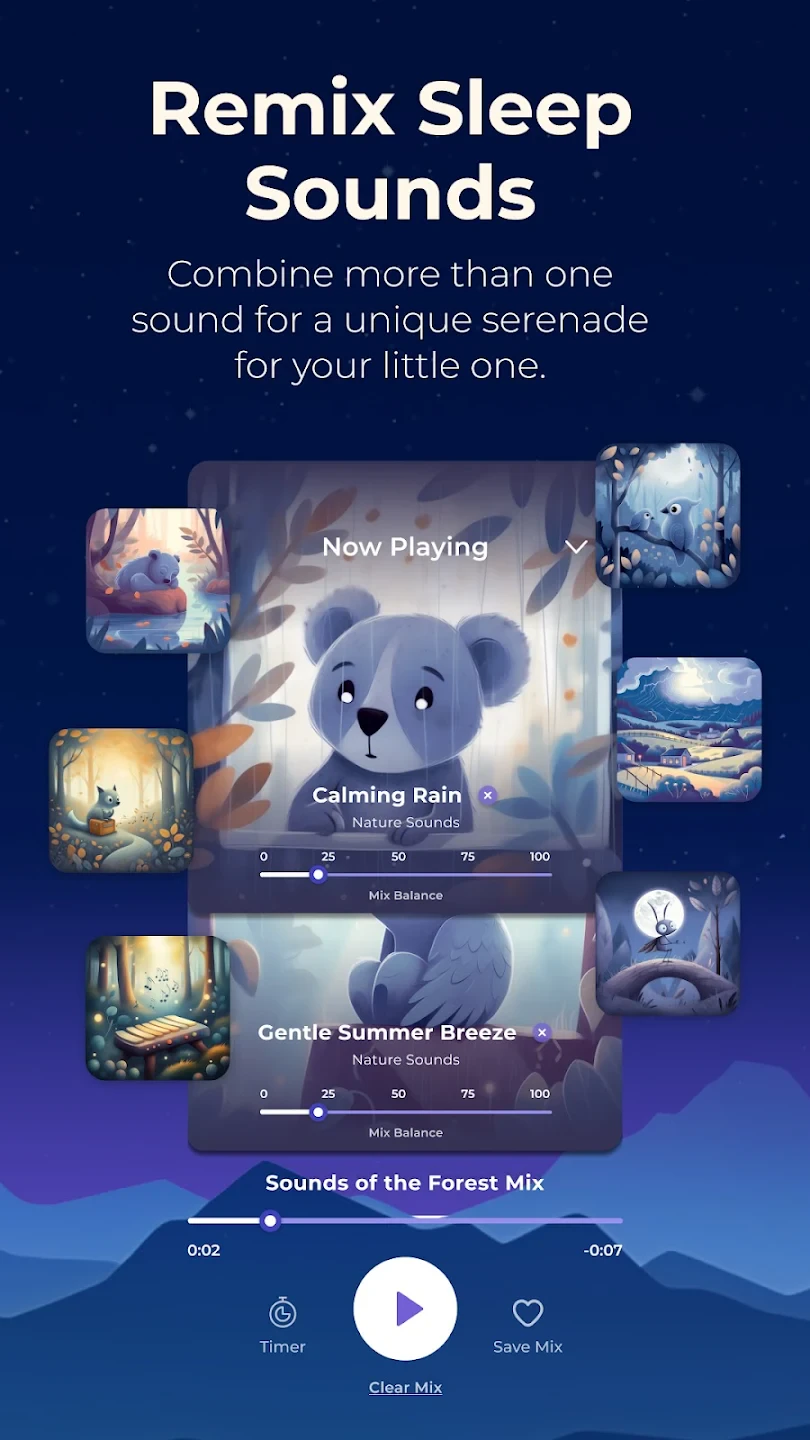 - Custom Playlists: Users can mix and match sounds and stories to create personalized sleep combinations for different situations, from naps to night-time wind-downs. This customization empowers parents to address their child’s evolving sleep needs as they grow, offering long-term value beyond the initial stages.