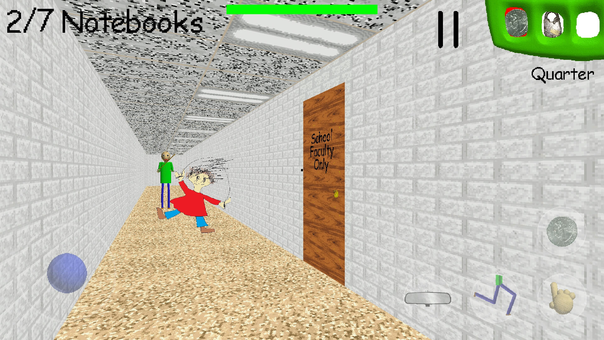3. Avoid Baldi: Be cautious and avoid Baldi, the teacher who roams the school. If he catches you, it will have consequences.
