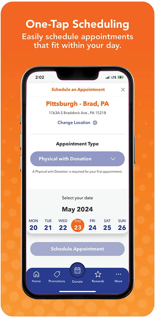 - Appointment Management: Easily view, modify, or cancel your scheduled donation appointments directly within the app. This feature saves you time and reduces frustration by eliminating the need for phone calls or website navigation solely for scheduling adjustments.