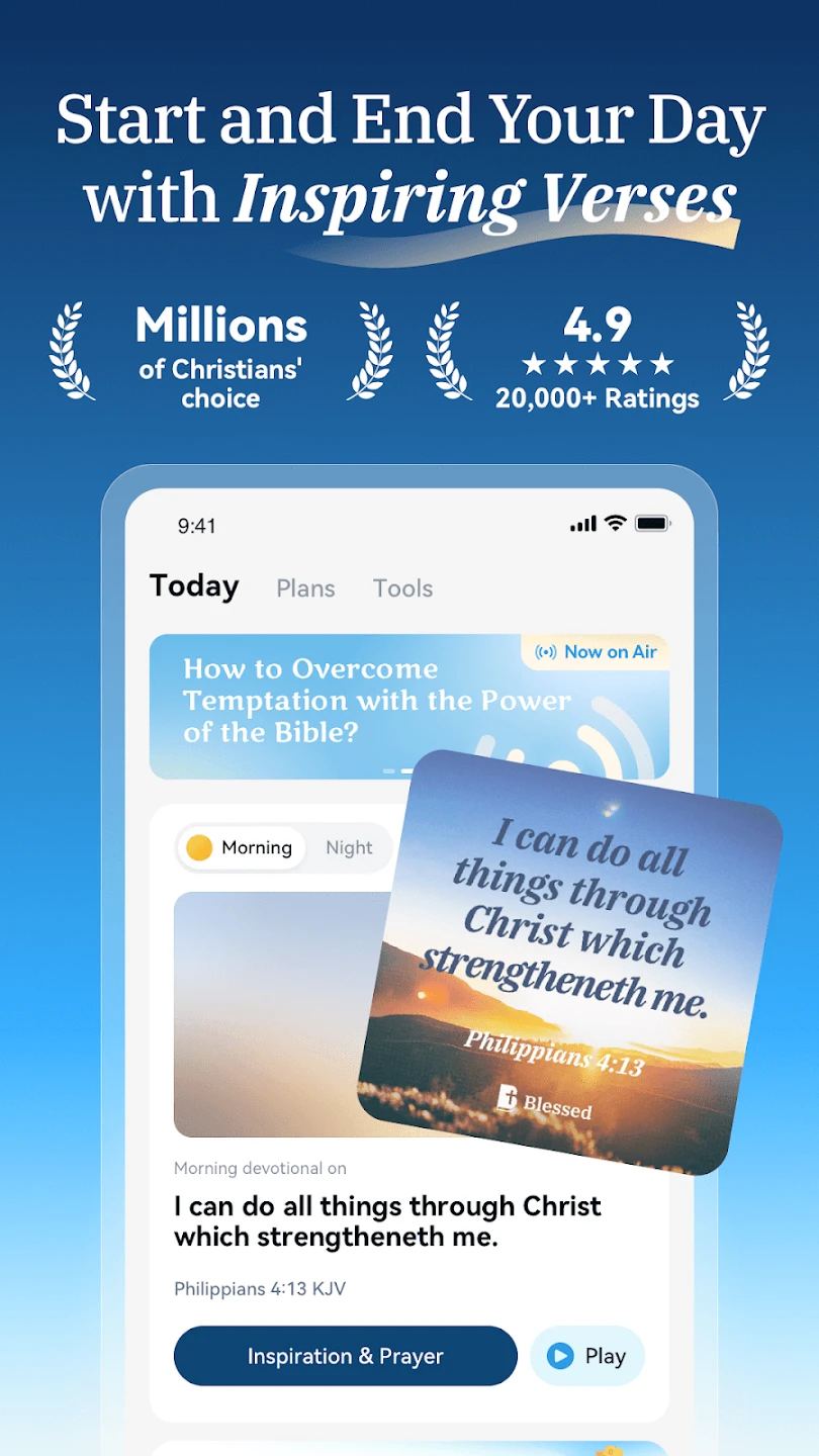 - Daily Verse & Reflection: Get a Bible verse delivered each day, often connected to a brief reflection or question for deeper thinking, helping users start their day with inspiration or find focus during meditation. This proactive feature ensures that spiritual input is consistent and simple to access without searching, fitting easily into a busy schedule.