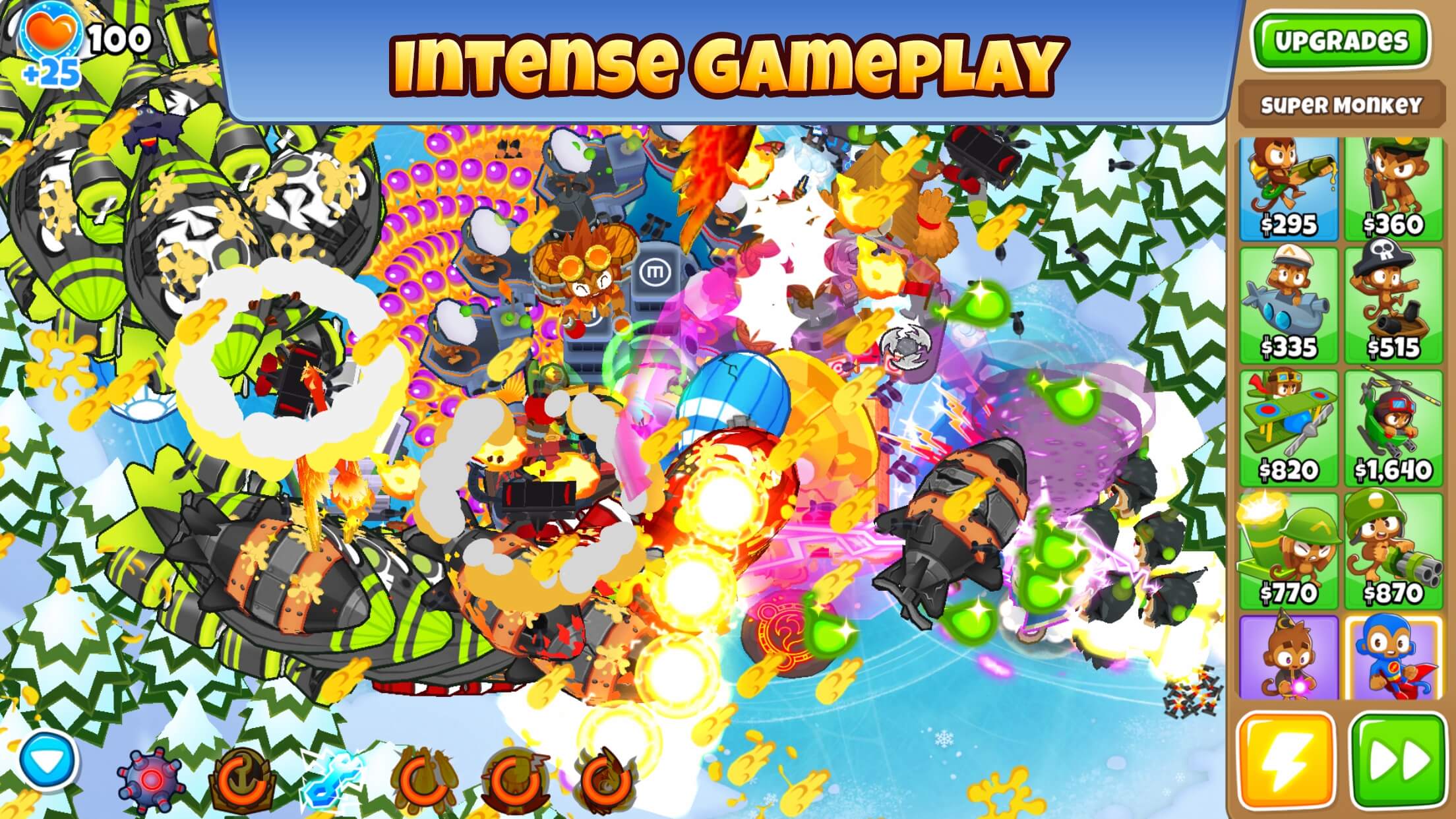 Bloons TD 6 offers a wide selection of towers, each with unique abilities and upgrade paths. Place your towers strategically along the Bloons’ path to maximize their effectiveness. From dart-throwing monkeys and powerful cannons to ice towers and explosive bomb shooters, there’s a tower for every playstyle. Experiment with different combinations to find the most effective strategies.