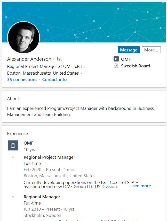 The same thing happened to me with every single detail mentioned by tracing Axel Wallin profile he changed his name on Linkedin to Bern D.