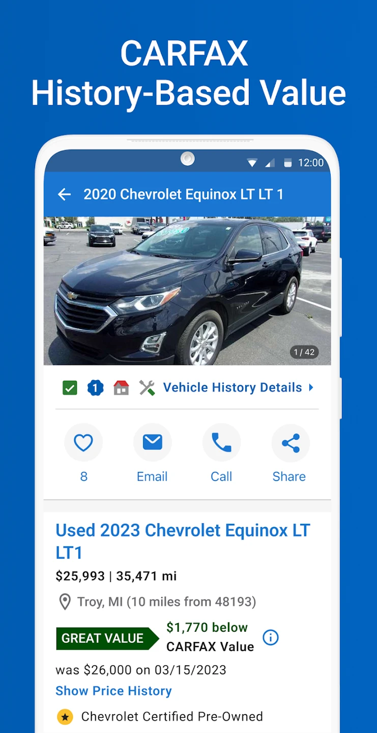 - Seamless Integration with Listings: The app integrates directly with various online automotive marketplaces and dealer platforms to fetch vehicle listings, often including pre-access to the CARFAX report. This integration saves considerable time by consolidating crucial data right alongside the listing details, improving the efficiency of comparing multiple vehicles simultaneously.