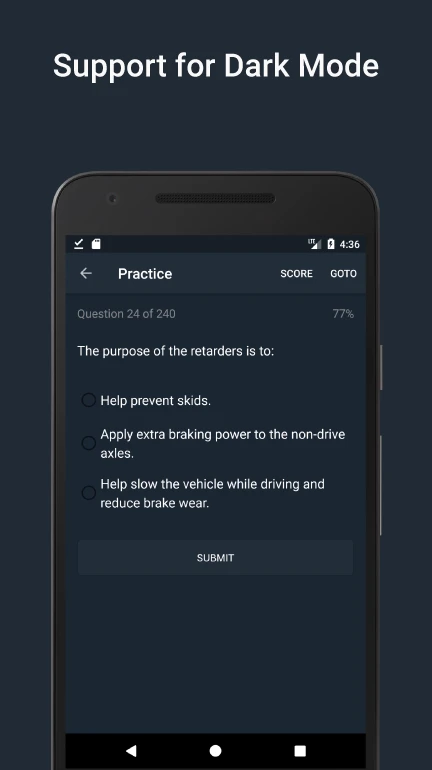 A: Yes! CDL Prep includes a full offline mode. You can download study materials and entire practice tests beforehand, allowing you to review and take tests even without Wi-Fi or cellular data connection.