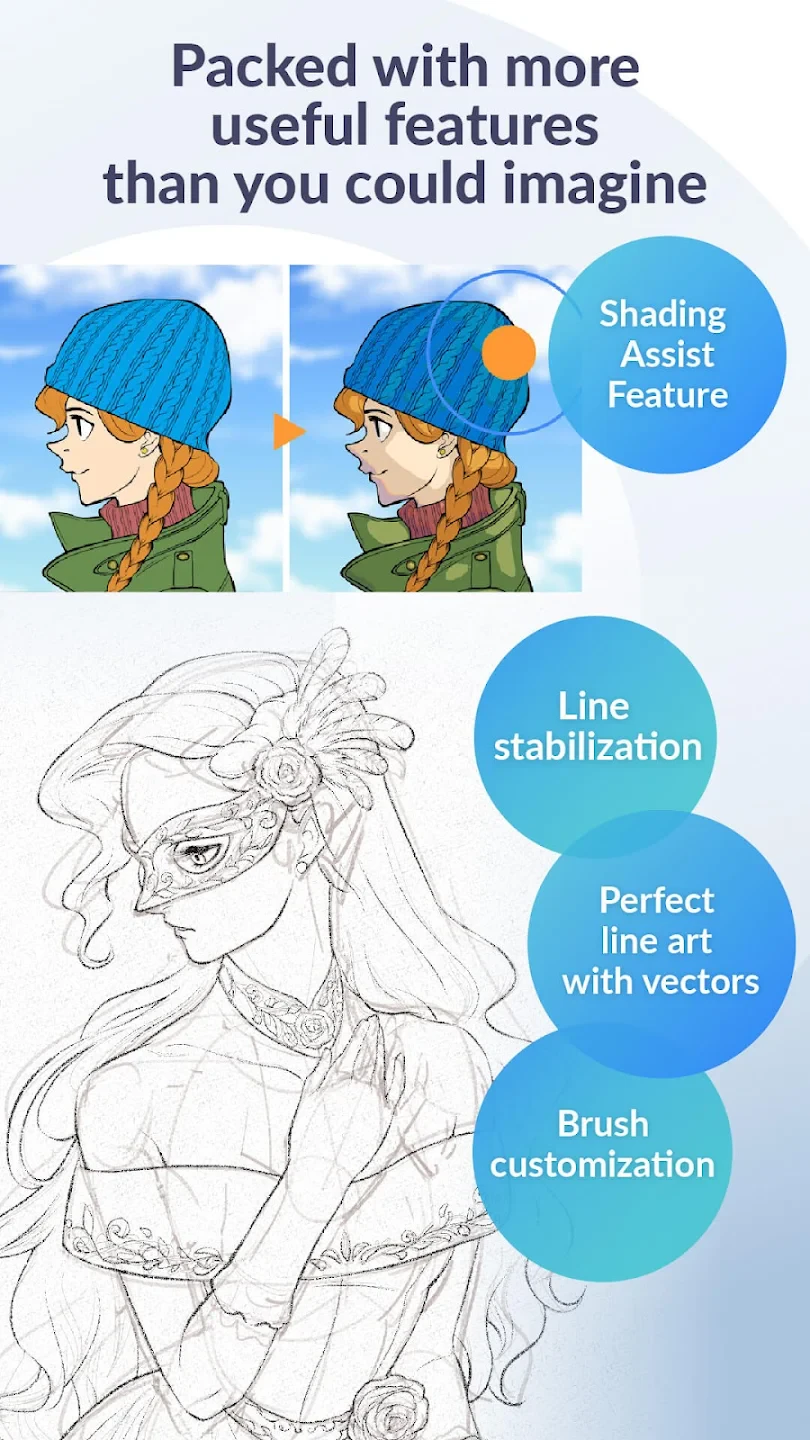 - Specialized Brush Engine: Includes a wide range of realistic and stylized brushes optimized for manga and illustration, featuring pressure sensitivity and texture mapping for professional-quality line art and shading.