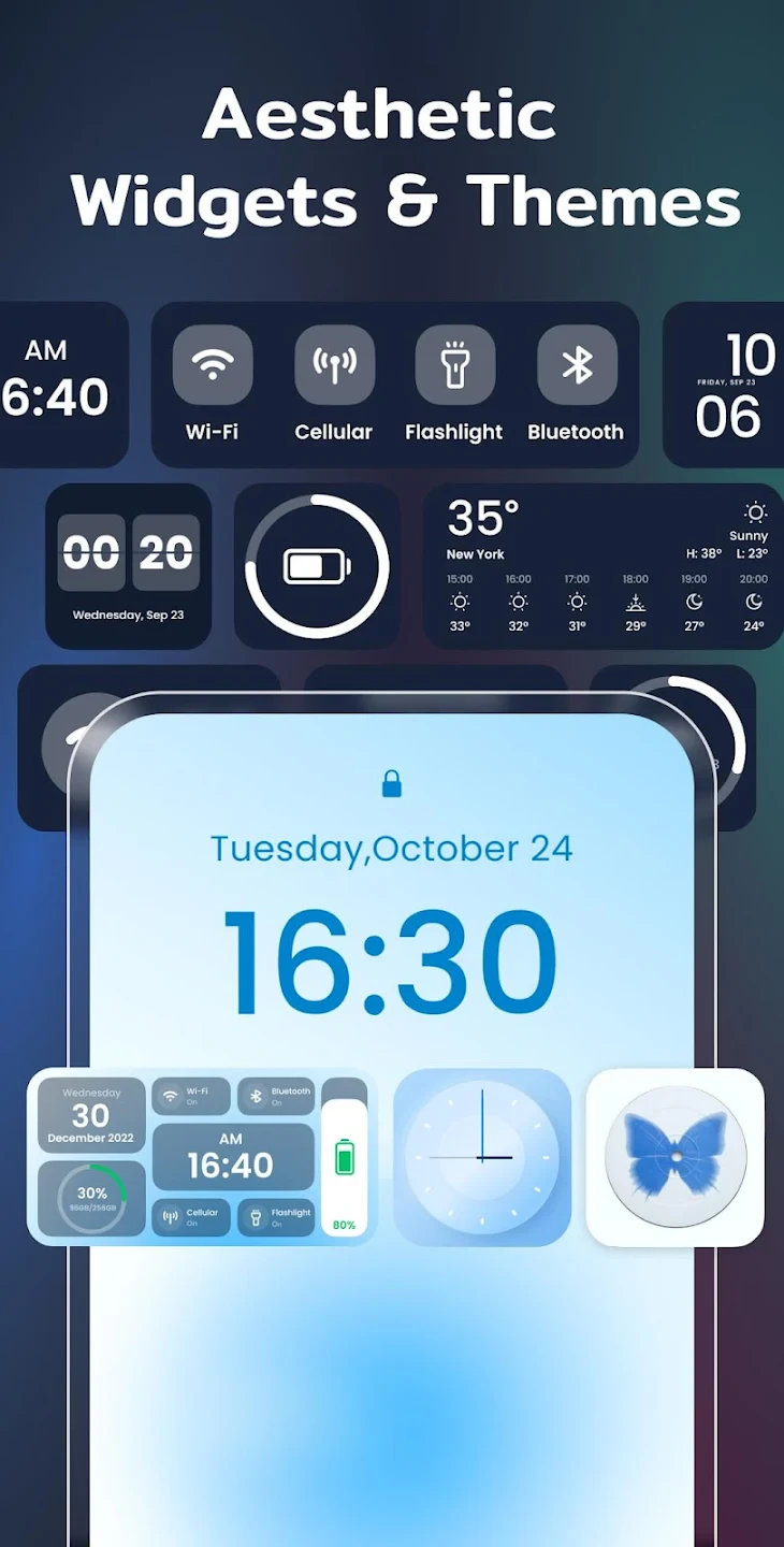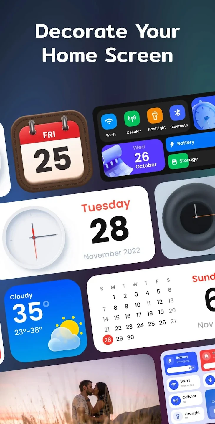 - Widget Integration & Selection: Access and organize your preferred widgets within Color Widgets quickly. From weather apps to calendars to utility widgets like the clock, you can curate an interface that’s both functional and visually dynamic.