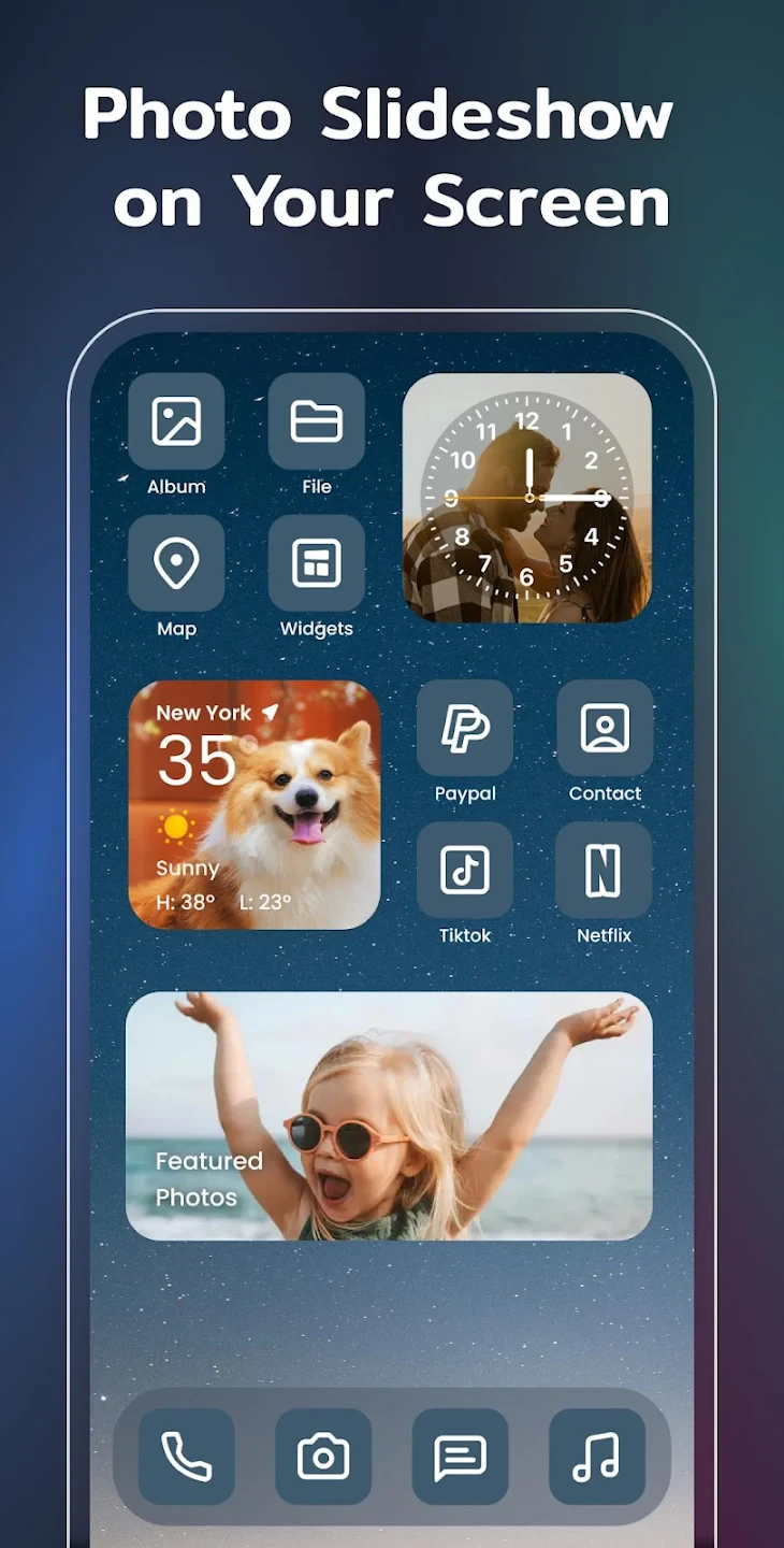 - Dynamic Clock Widget: The unique animated clock widget cycles through colors, making the simplest function visually engaging and a conversation piece without adding bloat or extra apps. You can use this instantly on any widget-organized homescreen.