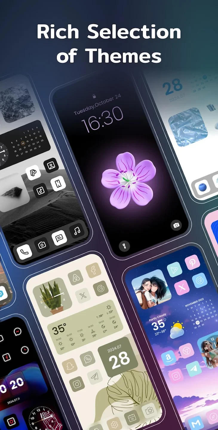 - Theme Consistency Guarantee: Every element, from the background pattern to notification dots, synchronizes with your customizable color cycle. In a world saturated with uniform designs, this unique feature creates truly personalized spaces quickly.