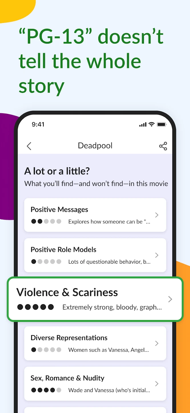 - Comprehensive Media Ratings System: The app allows users to search for and view detailed reviews of various media content. These reviews include scores for different aspects such as characters, educational value, and whether parental guidance is recommended. This detailed breakdown helps parents assess if specific media is suitable for their child’s age and maturity level.