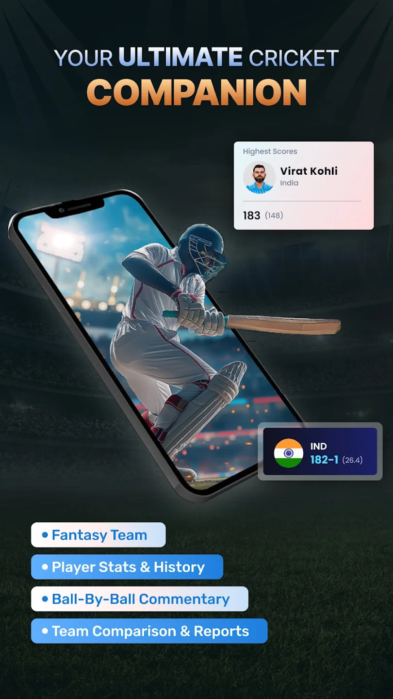 - Real-time Match Notifications: Instant alerts pop up whenever a match you’re following reaches key milestones like the start of play, a half-century, or the completion of an over. This keeps users informed without needing constant app checks, ensuring they never miss a crucial moment in the game.