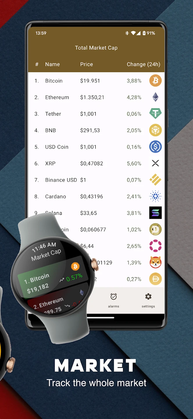 - Portfolio Tracker: Create and manage personal crypto portfolios with automatic value calculations in USD/EUR/BTC. The feature includes visual performance reports, spending breakdowns, and customizable alerts for price movements.