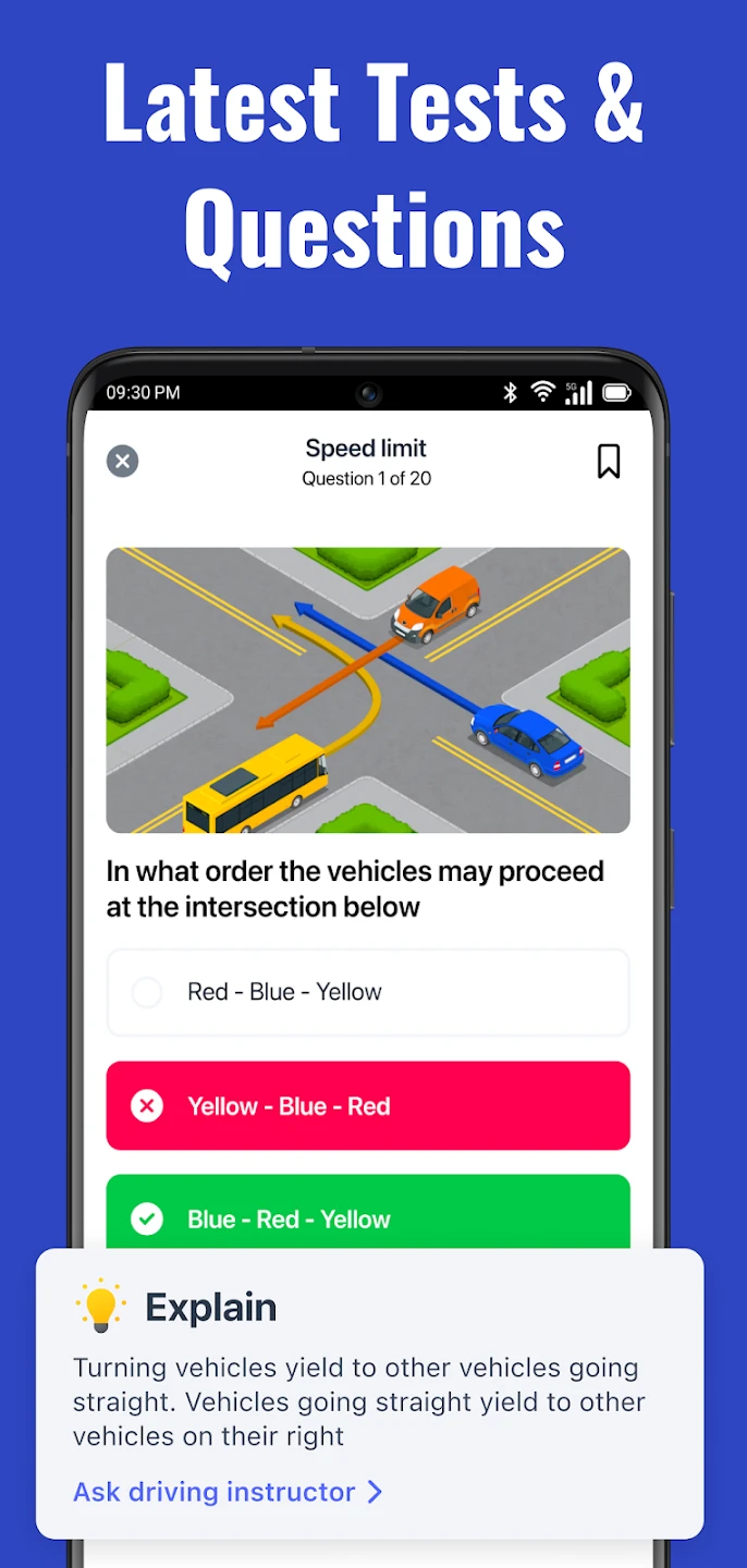 - Instant Feedback & Explanations: Receive immediate results on test attempts, with detailed explanations for both correct and incorrect answers. This functionality transforms each practice session into a learning opportunity, enabling rapid comprehension of complex rules such as proper lane usage during turns, and reinforcing safe driving principles for better retention.