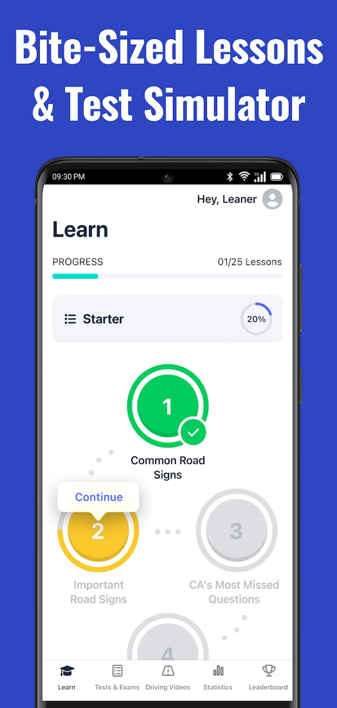 Designed for users needing quick, focused practice. Includes timed mini-quizzes for specific topics like traffic signals and vehicle checks, making it ideal for last-minute studying or reinforcing particular weak areas. |