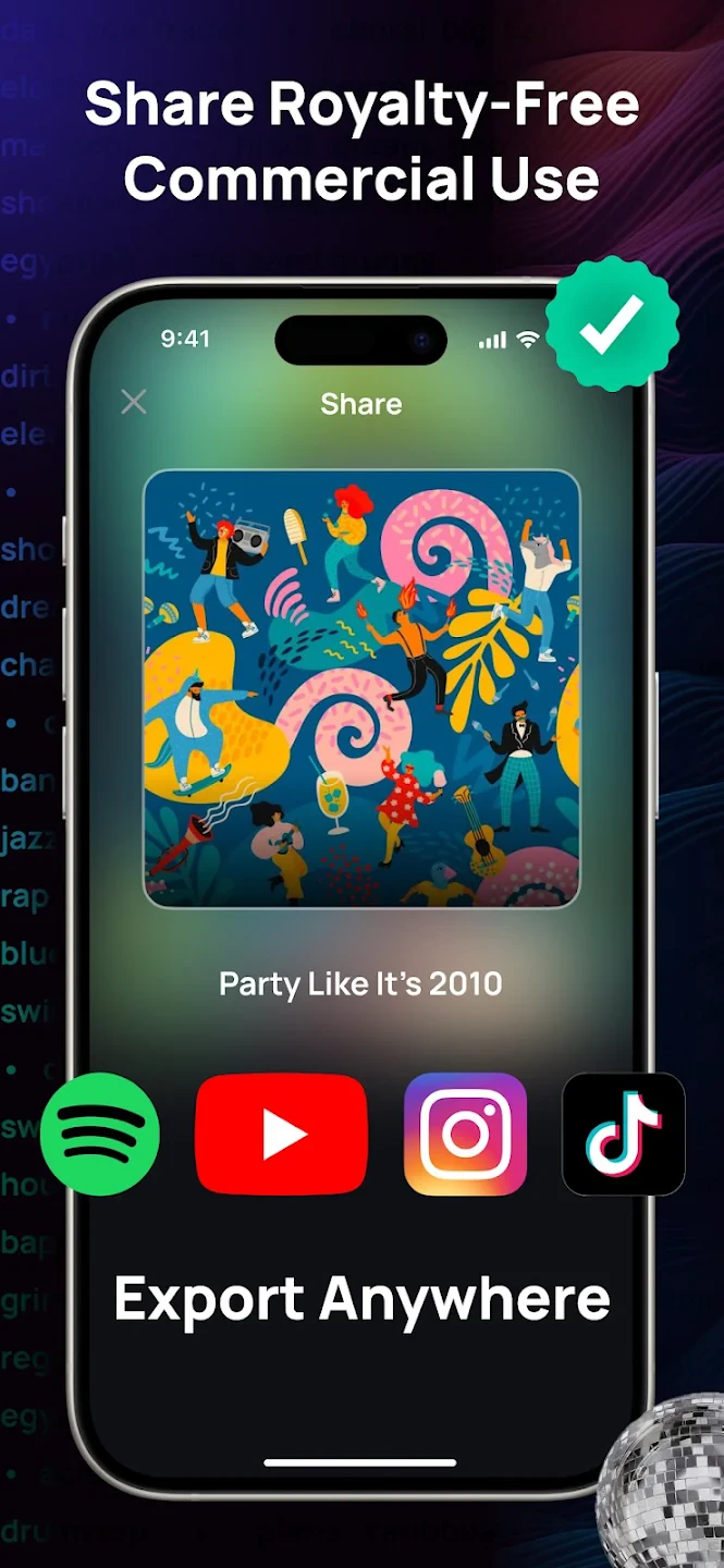 • Multi-format Export: Export your music in various formats including MP3, WAV, FLAC, or royalty-free licenses. This flexibility ensures your creations are compatible with all platforms and streaming services, whether for personal use or professional distribution.