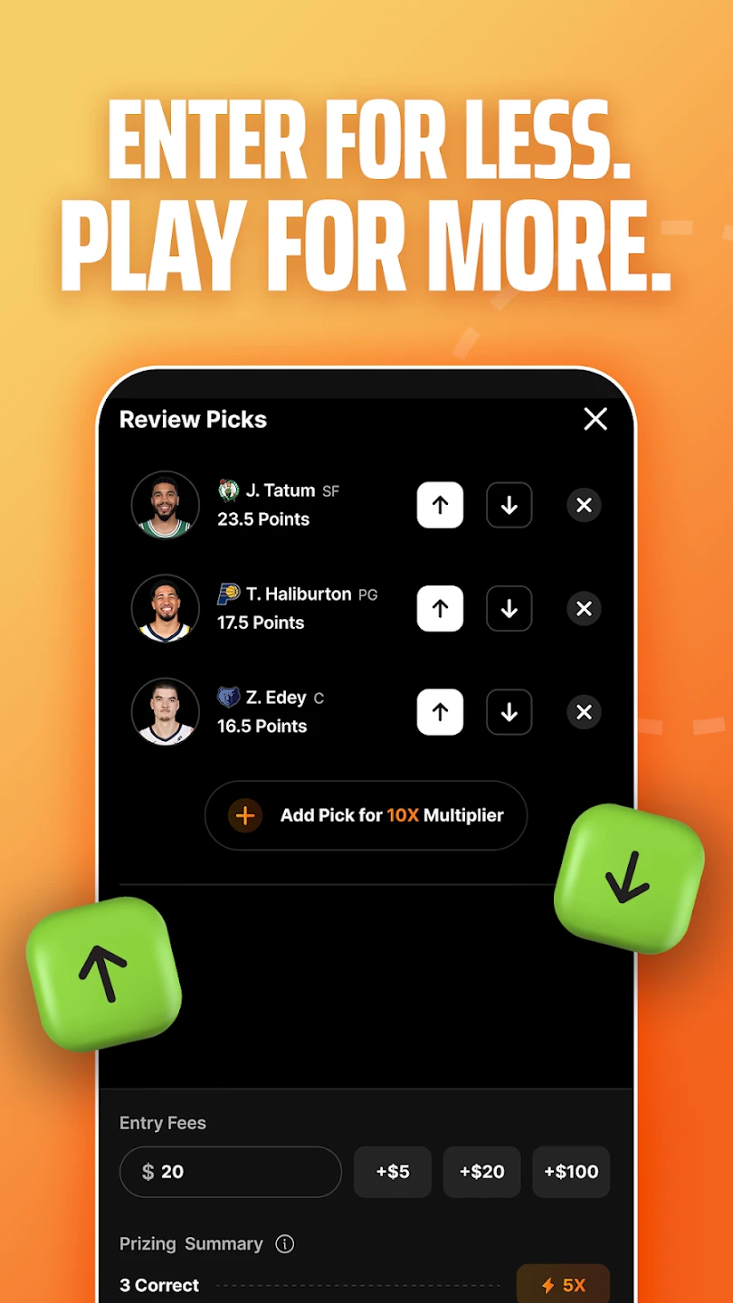 - Team Building & Entry: Users define a team of players across various sports for the entire Pick6 contest. This allows for strategic selection, improving usability by enabling thoughtful preparation before the prediction phase even begins, thus enhancing user performance and contest success.