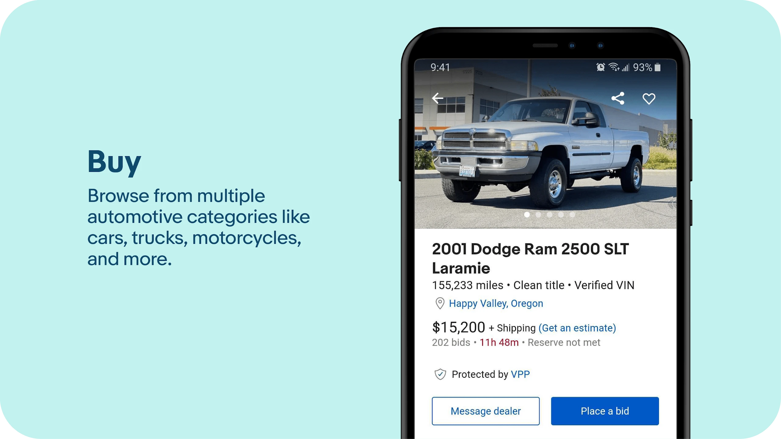 • Auction & Buy-Now Options: Participate in competitive auctions with other buyers to potentially secure deals, or quickly purchase fixed-price items with secure checkout; this feature supports both budget-conscious shoppers looking to save money and quick buyers needing immediate results.
