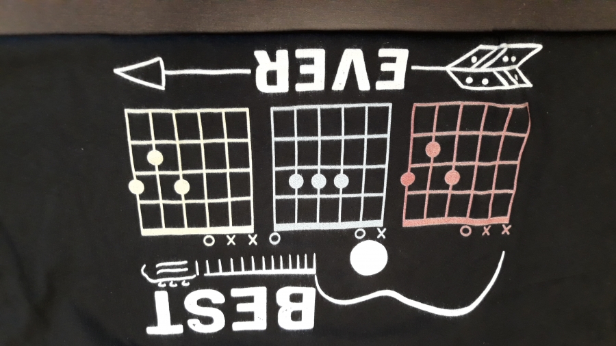 Ordered a shirt on May 24th to be here by Father’s Day. Got notices from them due to Covid it would not be here on time. I have received things from other countries that came faster than this package from Salt Lake City, Utah, United States. I asked for a refund because I had to buy another Father’s Day gift since this one wouldn’t be here on time and they said because the order was already placed that I wouldn’t be able to get a refund. $28 for a very poorly made shirt, and this shirt stinks to High Heavens . Finally yesterday July 13th it came in the mail. Very shoddy work, the T-shirt stinks, and there is paint missing and letters uneven from some of very very shoddy work I am very disappointed. Very cheaply made very shoddy work I would not recommend these folks to make dish Rags for me. I wish I would have read the reviews first. My son is an accomplished musician and he’ll prob wear the shirt because it’s from his 10 yr old son, but I can’t say enough bad about them! The photo only shows part of the shirt.