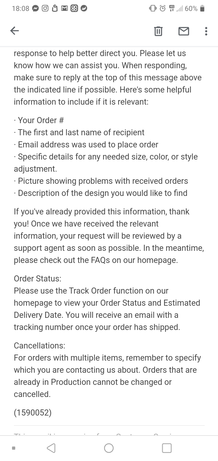 Same here. I ordered a mug and t-shirt on June 5th for Father’s Day. I received the mug but never received the t-shirt. I only receive automated responses when I email. My next step will be to file a dispute of charges. I will not order from this site again.