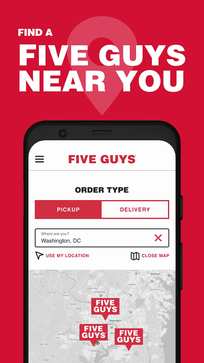 - Mobile Ordering for Pickup: Opt to get your Five Guys meal ready for pickup, specifying the car number or location details to potentially speed up the transaction when you arrive, using the app. Key benefits include reduced waiting time at the restaurant and the ability to pre-order during peak hours.