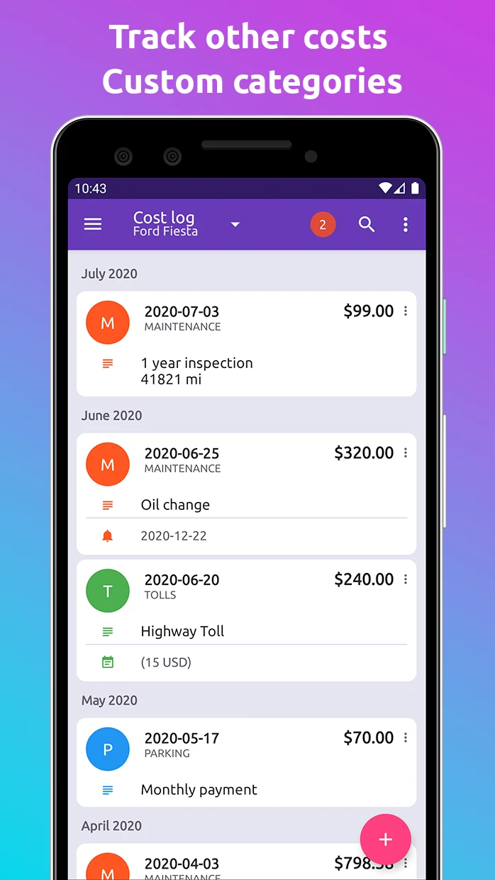 - Fuel Expense Log: Users can easily input details for each fill-up, including amount, cost, odometer reading, and gas station used, allowing for comprehensive analysis of fuel spending habits and vehicle efficiency over time.