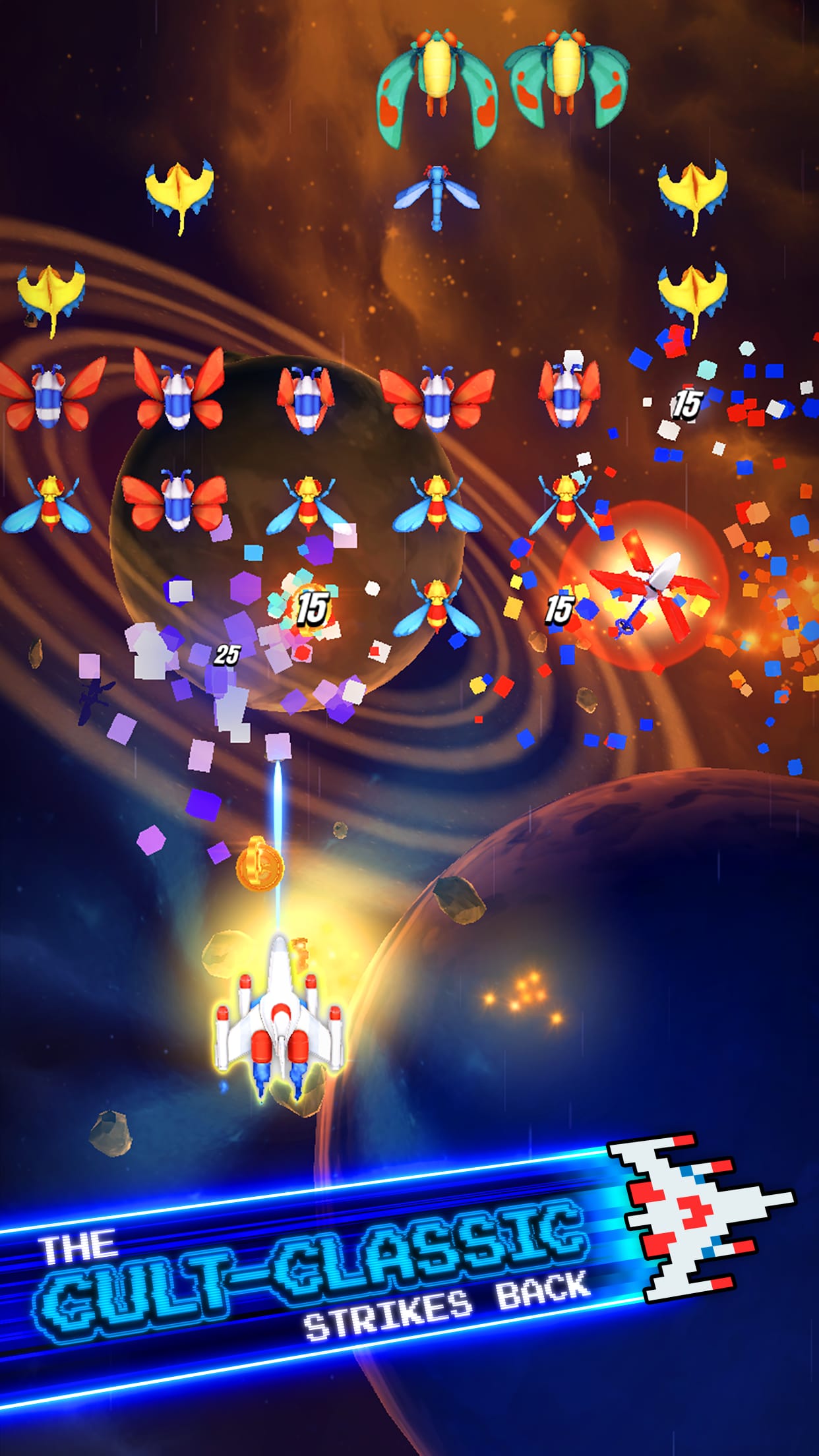 - Navigate the Battlefield: Use the touch controls or on-screen joystick to maneuver your starship across the scrolling battlefield. Dodge enemy fire and position yourself strategically to attack the alien ships.