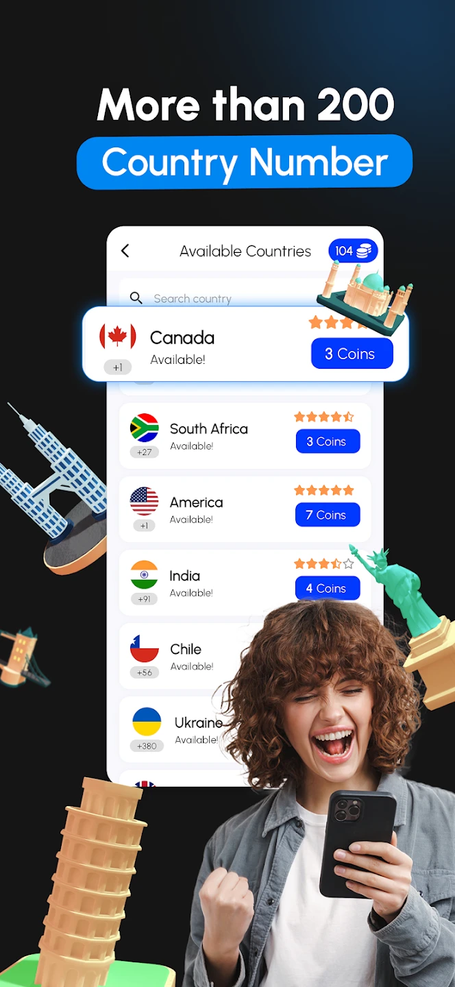 - Infinite Virtual Numbers: Get access to a large pool of virtual phone numbers across different formats. This feature is essential for users who need multiple numbers, perhaps for testing various accounts simultaneously, preventing spam, or managing different types of incoming communications without revealing personal details.