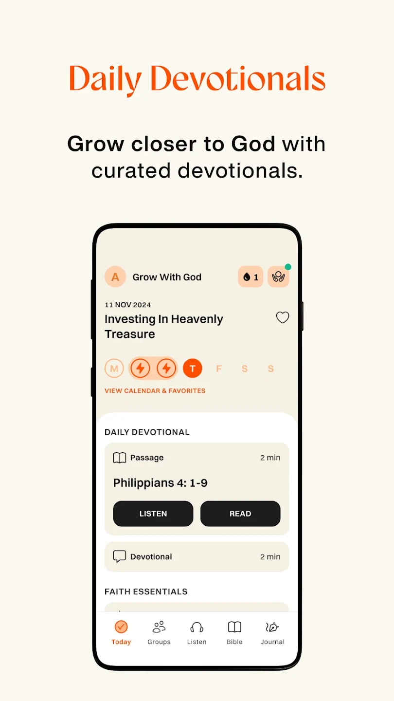 - Offline Content: Download essential resources like devotional readings, Bible verses, and journal templates for offline use, ensuring access to spiritual guidance anytime, anywhere without internet connection. This offline capability makes the app practical for travel or situations with limited connectivity.