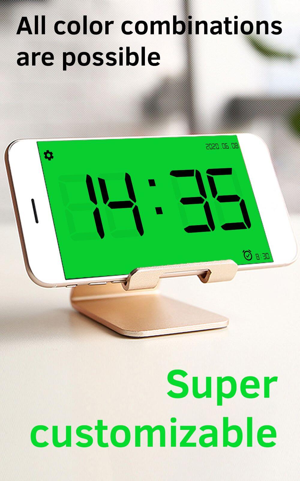 - Customizable Themes: The app provides a variety of customizable themes to suit your personal style and preferences. You can choose from a range of colors, backgrounds, and clock styles to create a clock display that matches your taste. Whether you prefer a sleek and modern design or a vibrant and playful look, the Huge Digital Clock App allows you to personalize your clock to match your mood or surroundings.