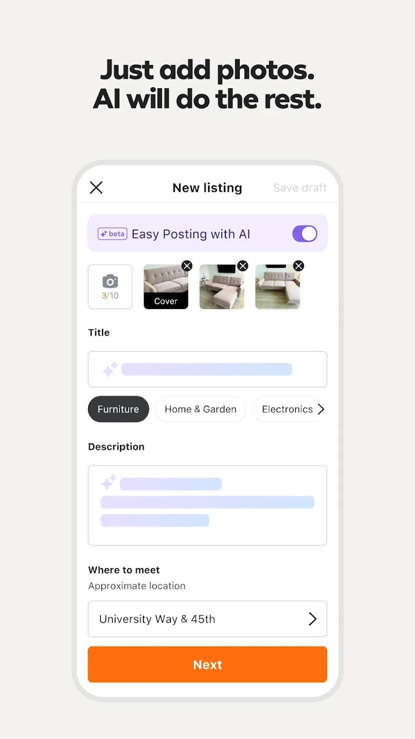 - Sell Your Items with Photos and Descriptions: Users can take clear photos of their items, provide detailed descriptions mentioning any flaws, and set a price. This feature ensures potential buyers have all necessary information to make informed decisions, reducing misunderstandings and promoting fair transactions.