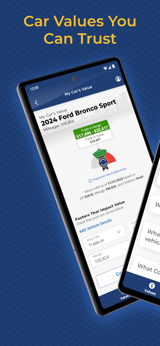 • Valuation Insights: Explore how different conditions (like mileage or modifications) impact a car’s value. The app provides deeper context, helping users understand the factors influencing the final Kelley Blue Book price and make adjustments for specific vehicle attributes.