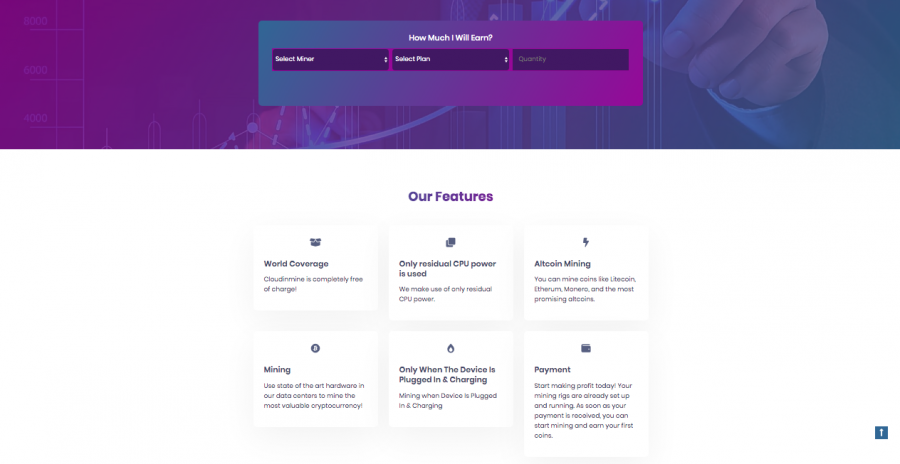 Uses a platform called Cloudinmine, that you are required to set up a very simple account. The site promotes itself as a DECENTRALIZED TRADING & INVESTMENT PLATFORM WITH BLOCKCHAIN INFRASTRUCTURE but from first glance looks like a crypto-mining service. Summary, beware anything to do with Cloudinmine.com.
