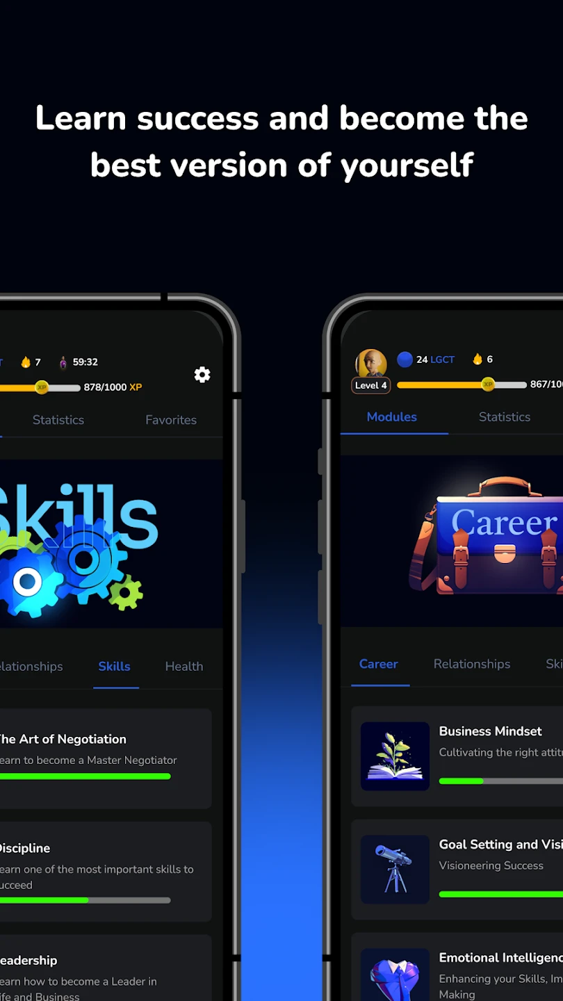 - Interactive Skill Modules: Delivers bite-sized learning through gamified challenges, using proven psychological principles that transform complex concepts into memorable experiences.