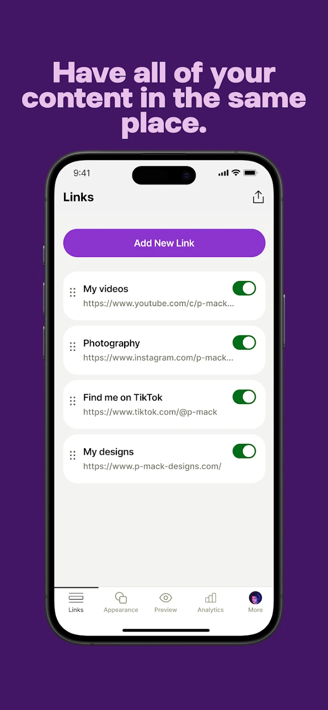 Linktree: Link in bio creator is an intuitive mobile application designed to help creators, influencers, and small businesses build professional-looking link-in-bio pages without technical knowledge. It enables users to consolidate multiple social media links, contact options, and website references into an elegant, branded microsite using their phone. Perfect for Instagram, TikTok, and Twitter profiles with limited bio space, this tool gives anyone a polished digital hub to promote their content, services, or products.