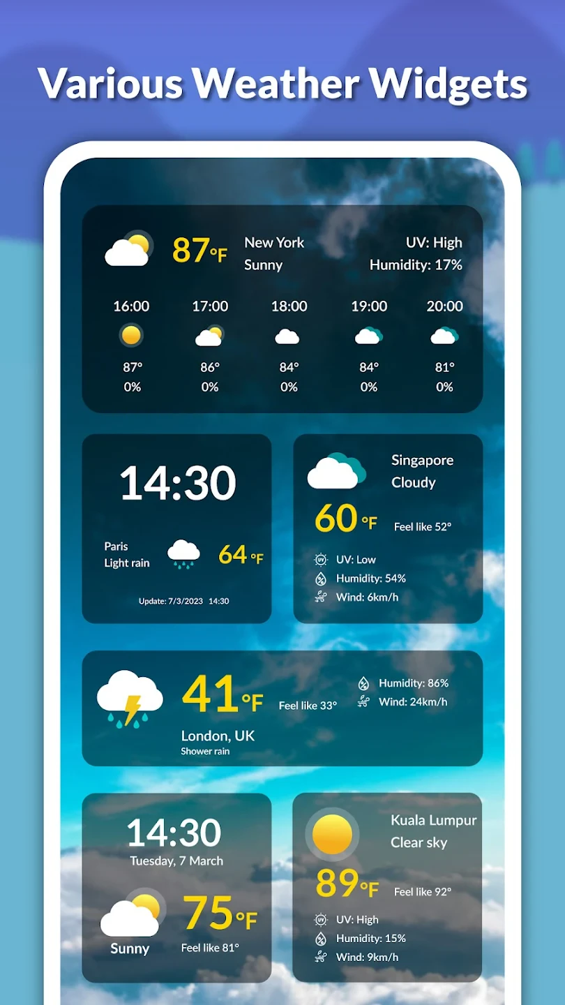 - Customizable Home Widget: Place a dynamic mini-display directly on your phone’s lock screen or home page, showing key metrics like current temp, feels-like temperature, and tomorrow’s high/low without opening the full app. This streamlined interaction significantly reduces friction in your daily routine when quick weather glimpses are needed.