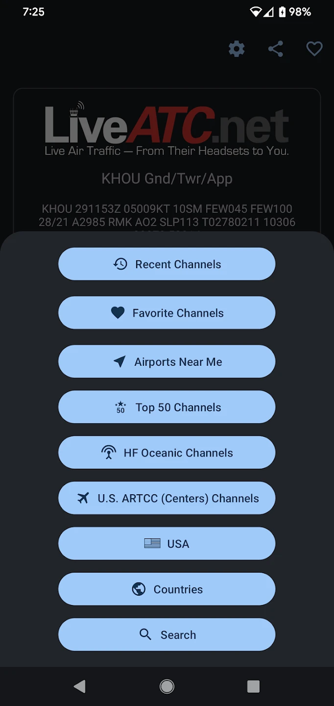 The LiveATC for Android app brings real-time Air Traffic Control communications directly to your smartphone or tablet. It allows users to listen to authentic air traffic conversations, experience the excitement of aviation, and access a comprehensive directory of airports and frequencies around the world.