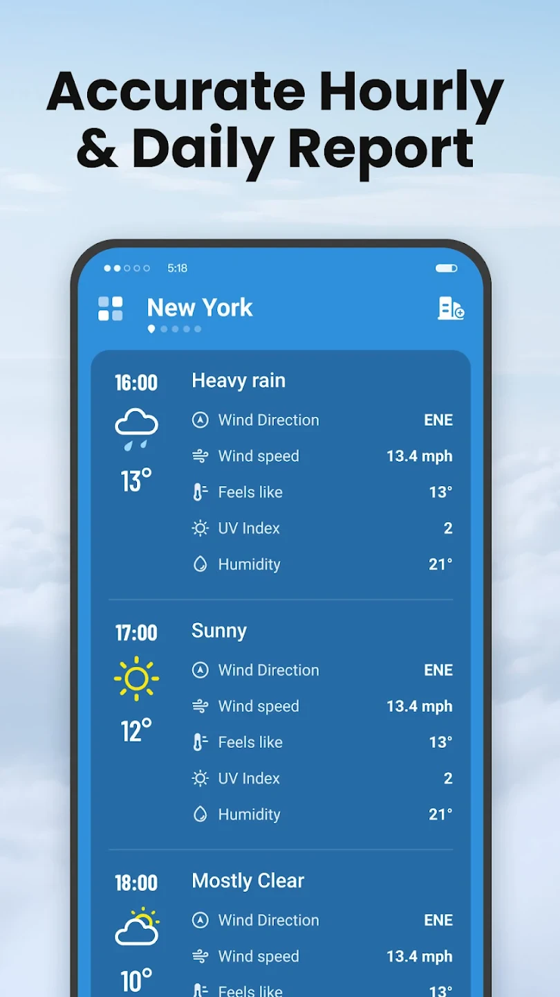 - Real-Time Local Data Feed: Instantly receives current conditions, temperature, humidity, wind speed, and precipitation probability from nearby weather stations. This feature eliminates guesswork for immediate needs, such as quickly determining if an outdoor photo shoot is still viable despite the forecast.