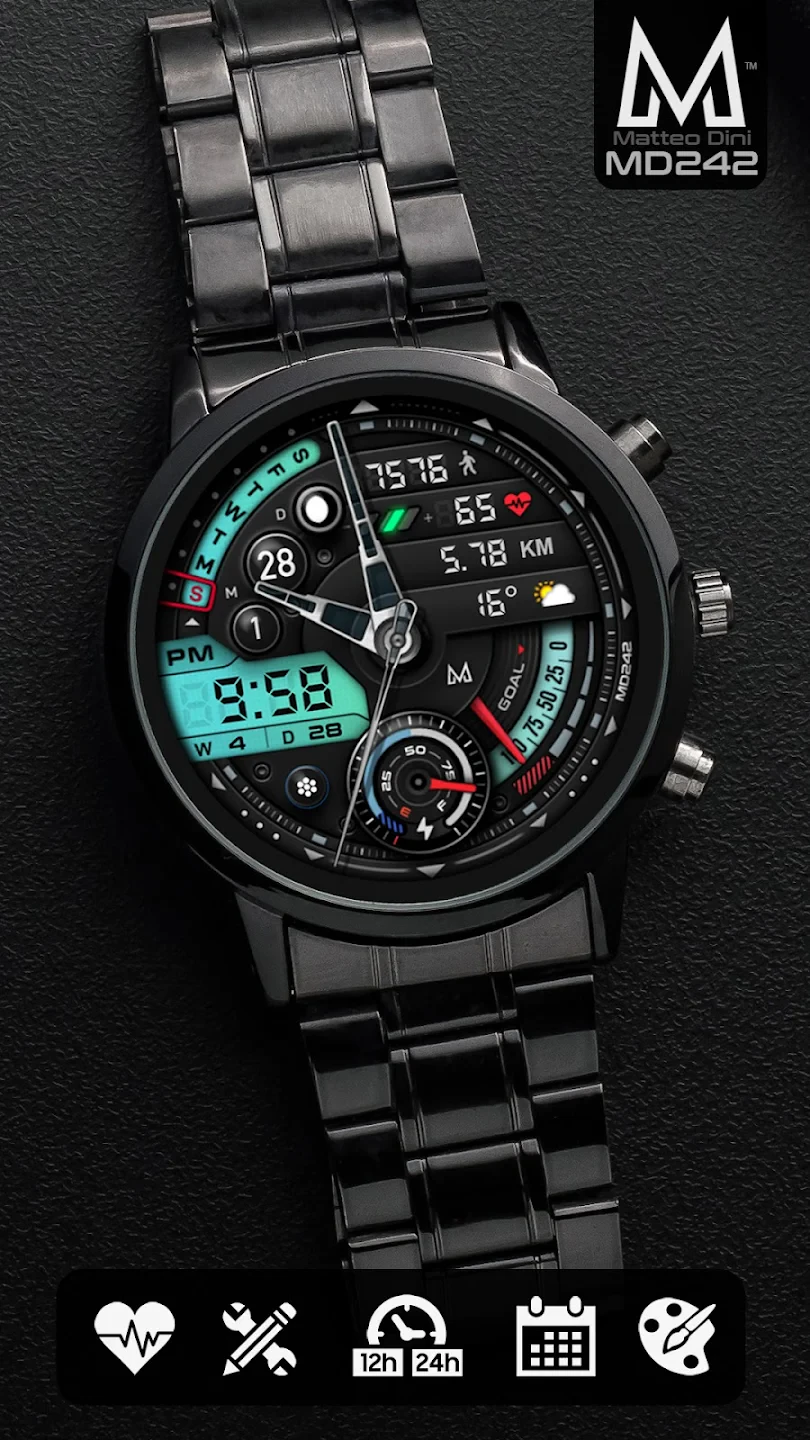 The MD242 Hybrid watch face is a customizable smartwatch face application for Wear OS. It allows users to blend analog clock designs with digital complications, offering a unique aesthetic that can be tailored to individual style preferences. It’s designed for users seeking more than standard digital or analog faces, providing creative control over their watch display.
