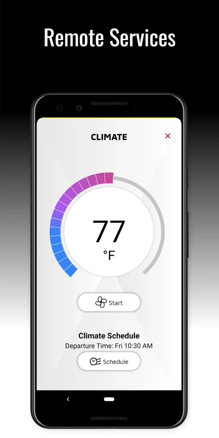 - Remote Vehicle Starting/Climate Control: Prepare your vehicle’s interior for driving by starting the engine and adjusting the climate control system remotely before you even leave home. Using this function, you can efficiently manage interior temperature and cabin comfort, especially valuable during extreme weather conditions, saving time and improving your comfort.