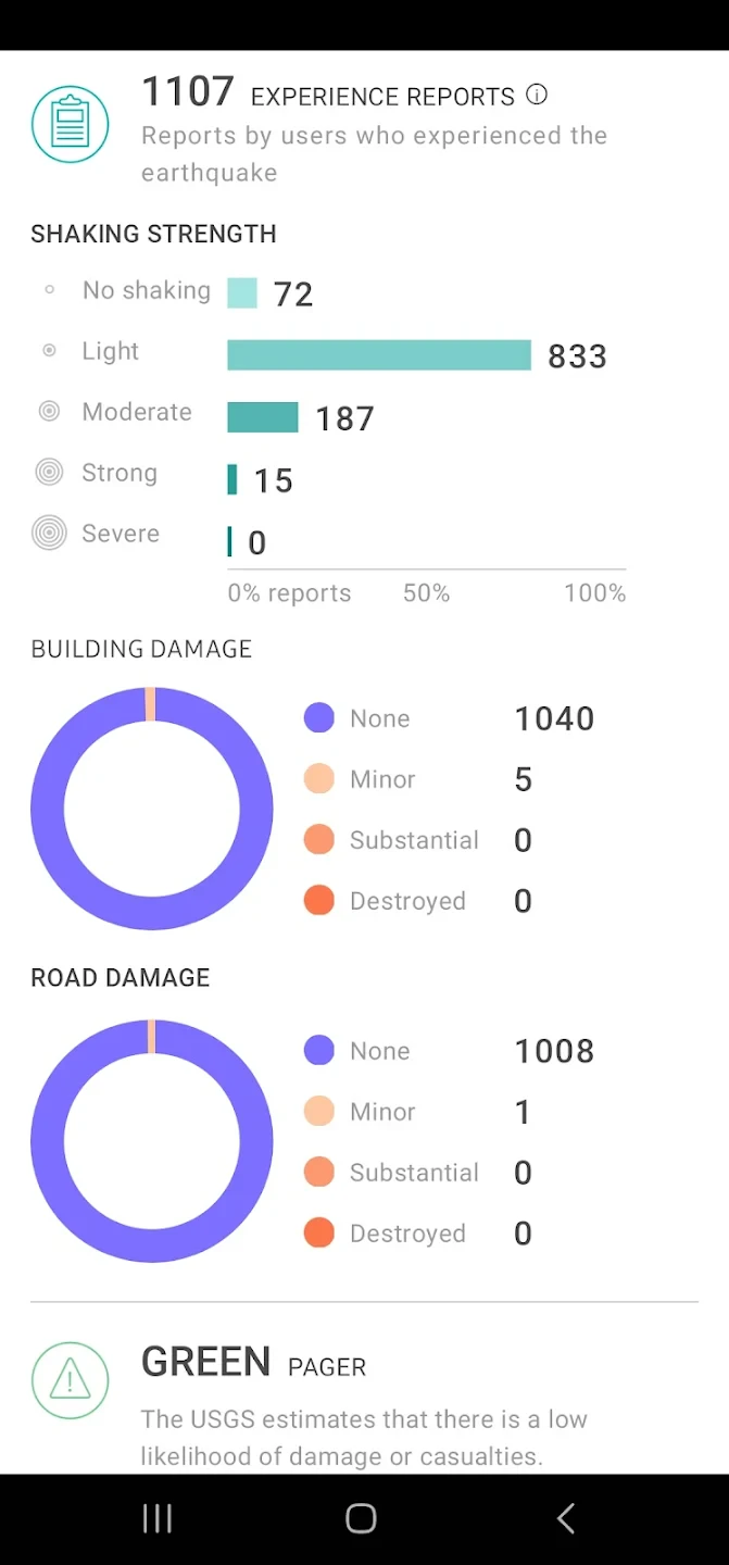 - Integration with USGS: The app integrates directly with the USGS (United States Geological Survey) earthquake monitoring system. When a significant seismic event is detected either by the app’s sensor network or by USGS networks, it is promptly relayed to the USGS, contributing valuable data for earthquake science and public awareness. This integration ensures alerts are compared with official data sources, enhancing credibility and providing comprehensive information for different user needs and geographic locations.