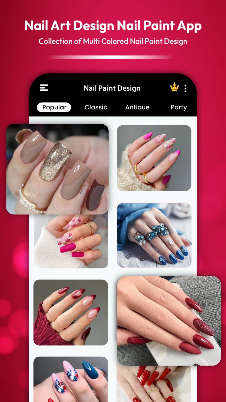 The core appeal of this app, Nail Art Design : Nails Polish, lies in its practical utility for finding inspiration and planning intricate nail decoration ideas efficiently. Users can experiment with countless color combinations, patterns, and embellishments without wasting actual nail polish or time, making it an excellent tool for brainstorming new looks, practicing complex designs, or simply enjoying the creative process from their phone or tablet.