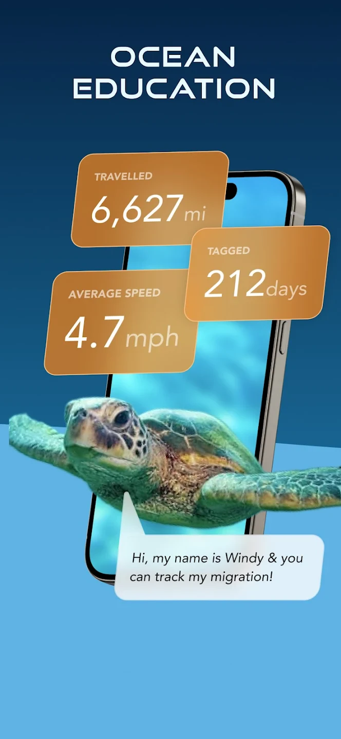 Offers tracking data for a wider range of marine life beyond just sharks, including turtles and marine birds. Features a robust search function and detailed animal bio information accessible via simple taps.