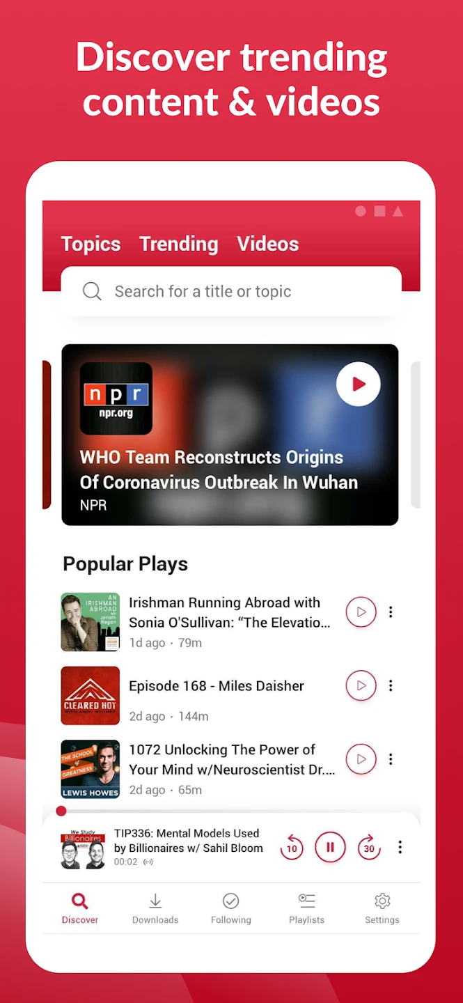 - Customizable Settings & User Interface: Offers user-friendly controls for managing downloads, setting storage limits, adjusting audio quality, and personalizing the interface theme to suit individual preferences and needs, ensuring a flexible experience for diverse users from casual listeners to dedicated podcast enthusiasts.