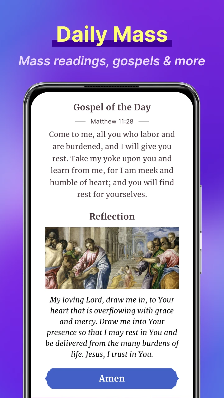 - Prayer Planner & Daily Mass Times: Plan your prayers, set intentions, and schedule recurring devotions. It also includes features to find the nearest Catholic Mass times, aiding users in planning church attendance and participation in parish life. This functionality simplifies integrating prayer into the busy schedule of a Catholic faithful.