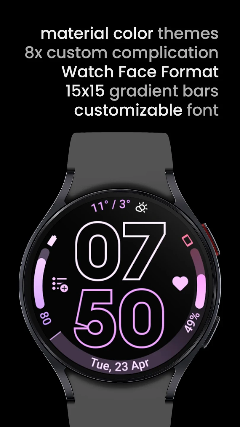 A: It’s designed for performance and battery efficiency. The minimalist vector graphics and lack of heavy animation make it one of the least resource-intensive watch faces available for Wear OS.