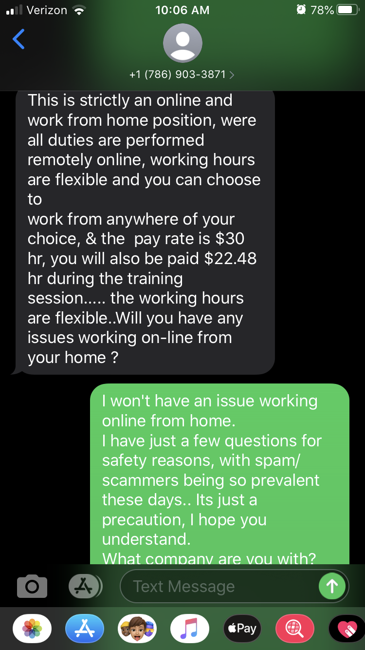 Texted me about a job offer that pays $30/hr, then I found out it was a scam.