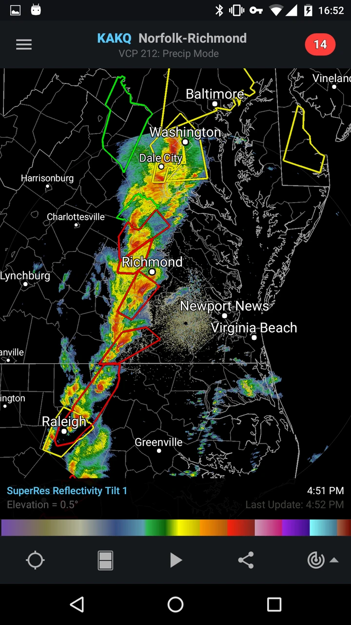 • Map Tools & Controls: The app includes intuitive map navigation tools, featuring panning, pinch-to-zoom, and the ability to toggle different radar layers (reflectivity, velocity base, storm relative velocity) or overlay overlays like county boundaries and significant weather warnings. These controls simplify complex data interpretation, making it easier for users to focus on specific areas or weather phenomena relevant to their needs.